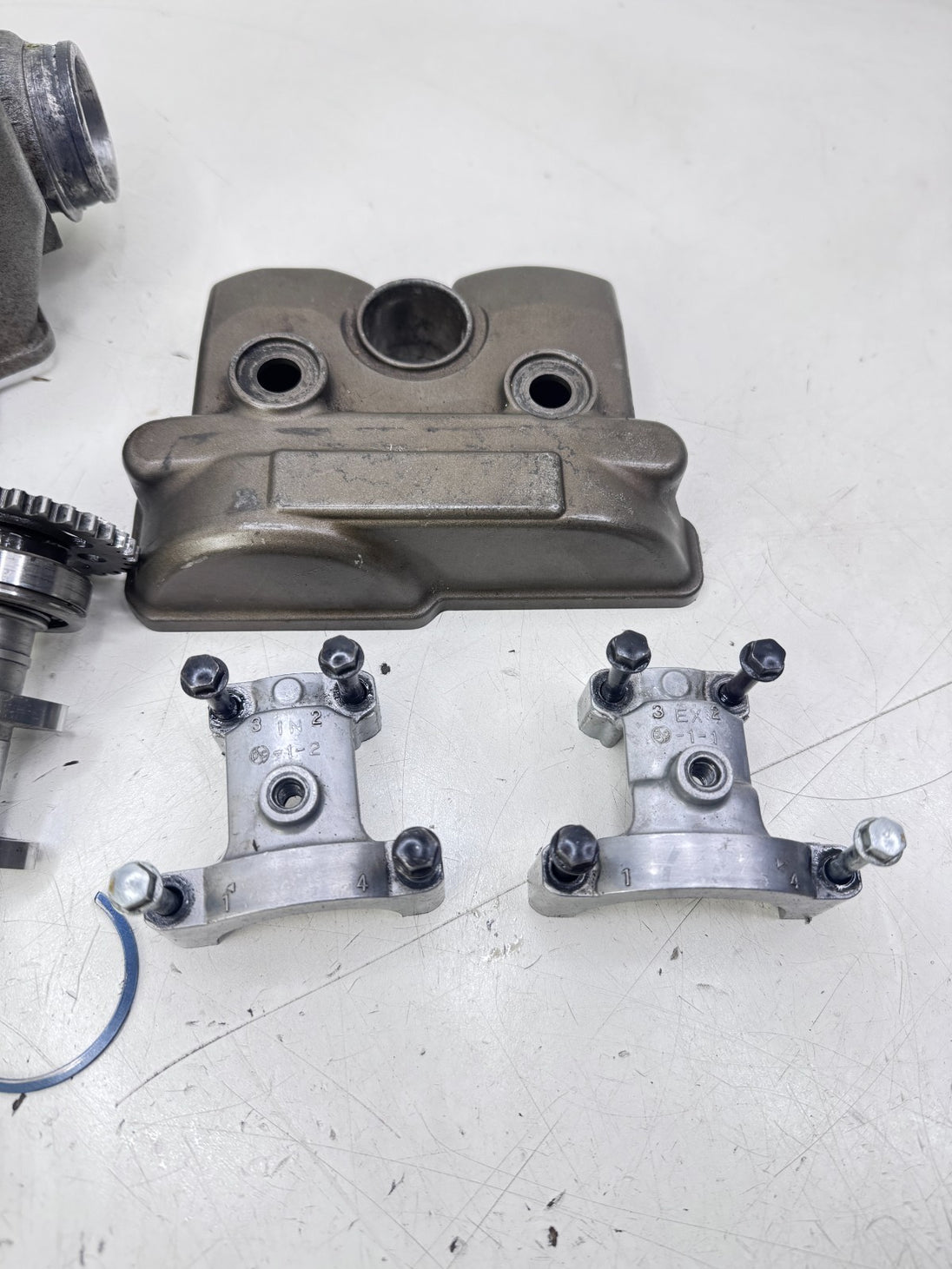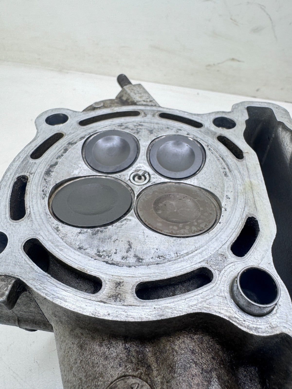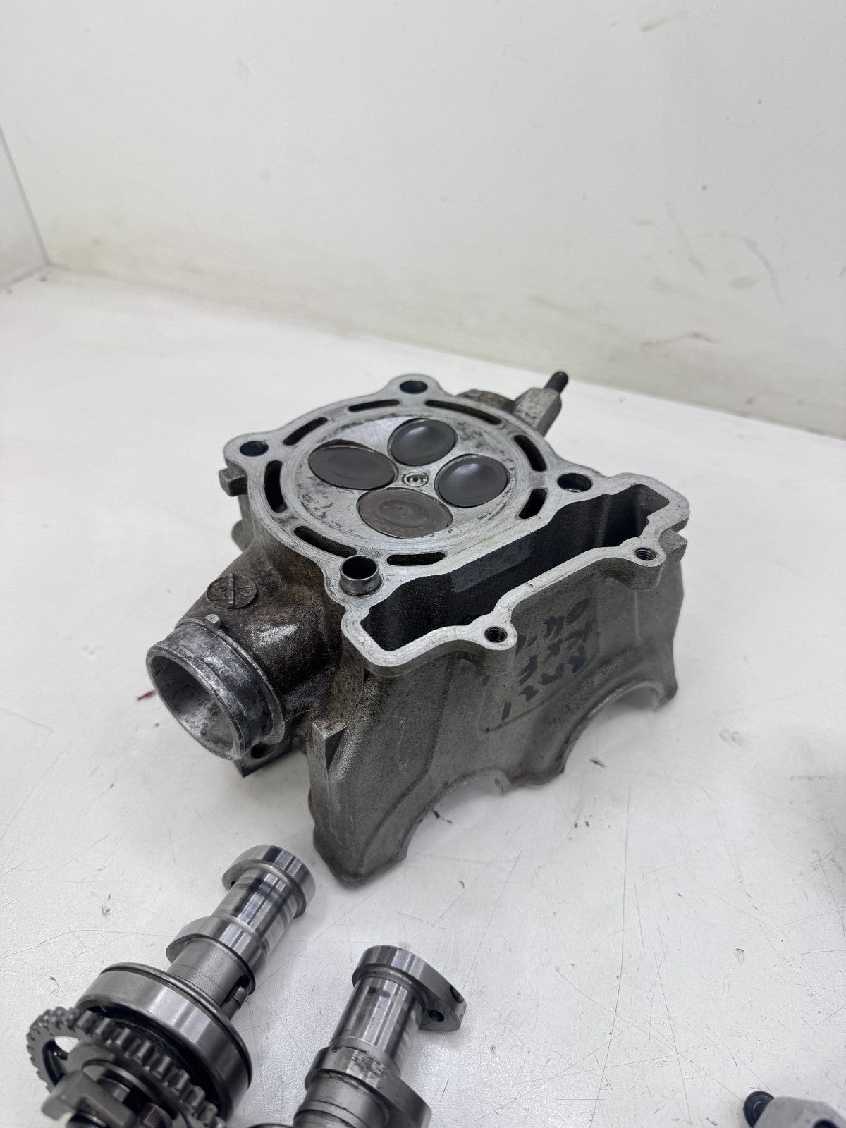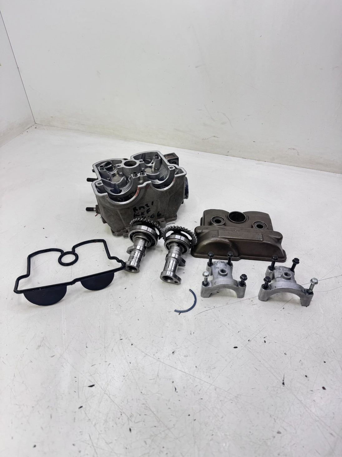 Head has been ported intake and exhaust, Bike came with used set of valves(not included) and look to be new valves installed, head is good condition with no excessive wear on journals, see pictures for further details, photos show all parts included, some parts of assemblies might be missing so look carefully at what's included.